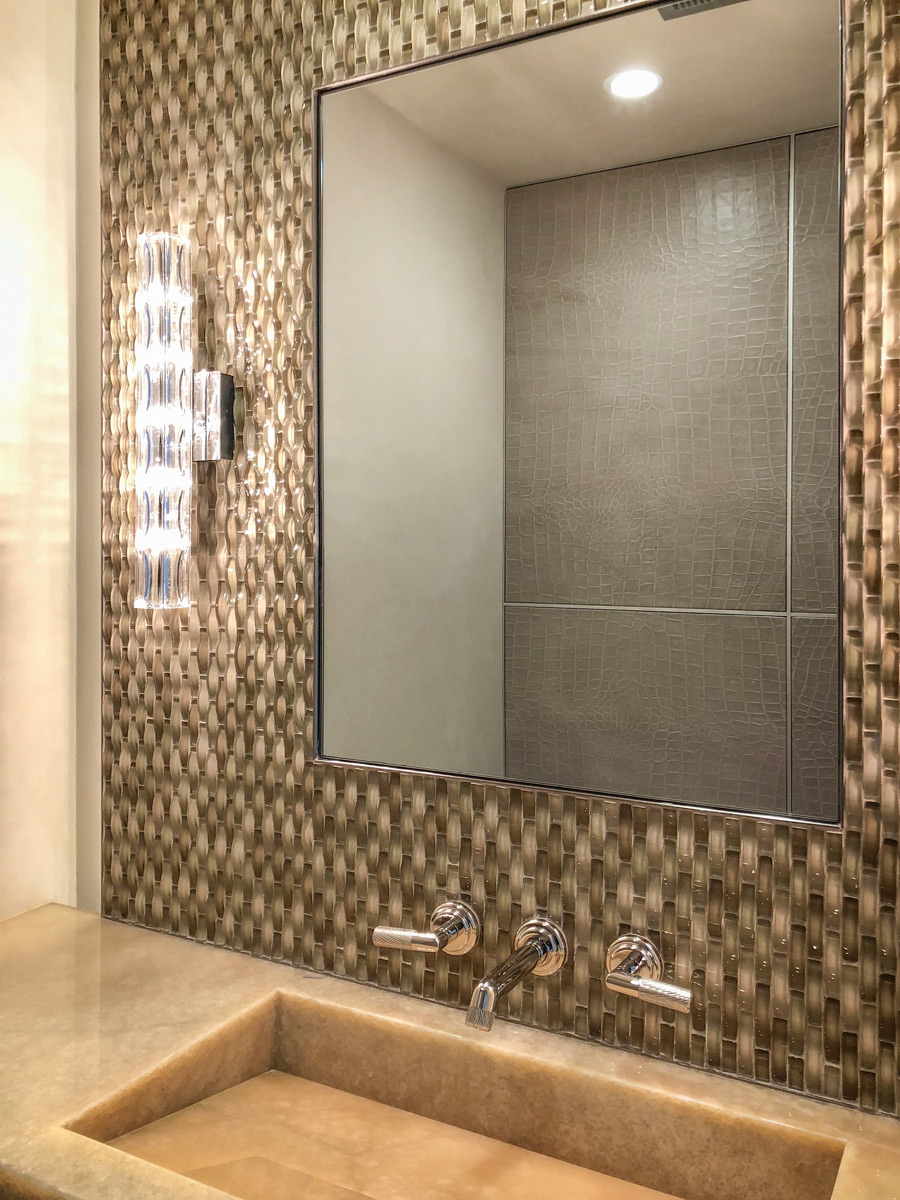 iii. Custom furniture, upholstery and furnishings, custom architectural and interior details, custom acoustic materials - diffusors, absorption, reflection, fabrics and track systems, sintered metals, baffles, gobos, doors and windows; installation engineering and implementation, custom cabinetry and millwork, panel and surface systems, custom audio/video/computer component/accessories integration and implementation, accessories, art pieces, lighting and fixtures, bathroom and plumbing fixtures; water features and fire features; objects, surfaces, musical instruments, experimental installations.